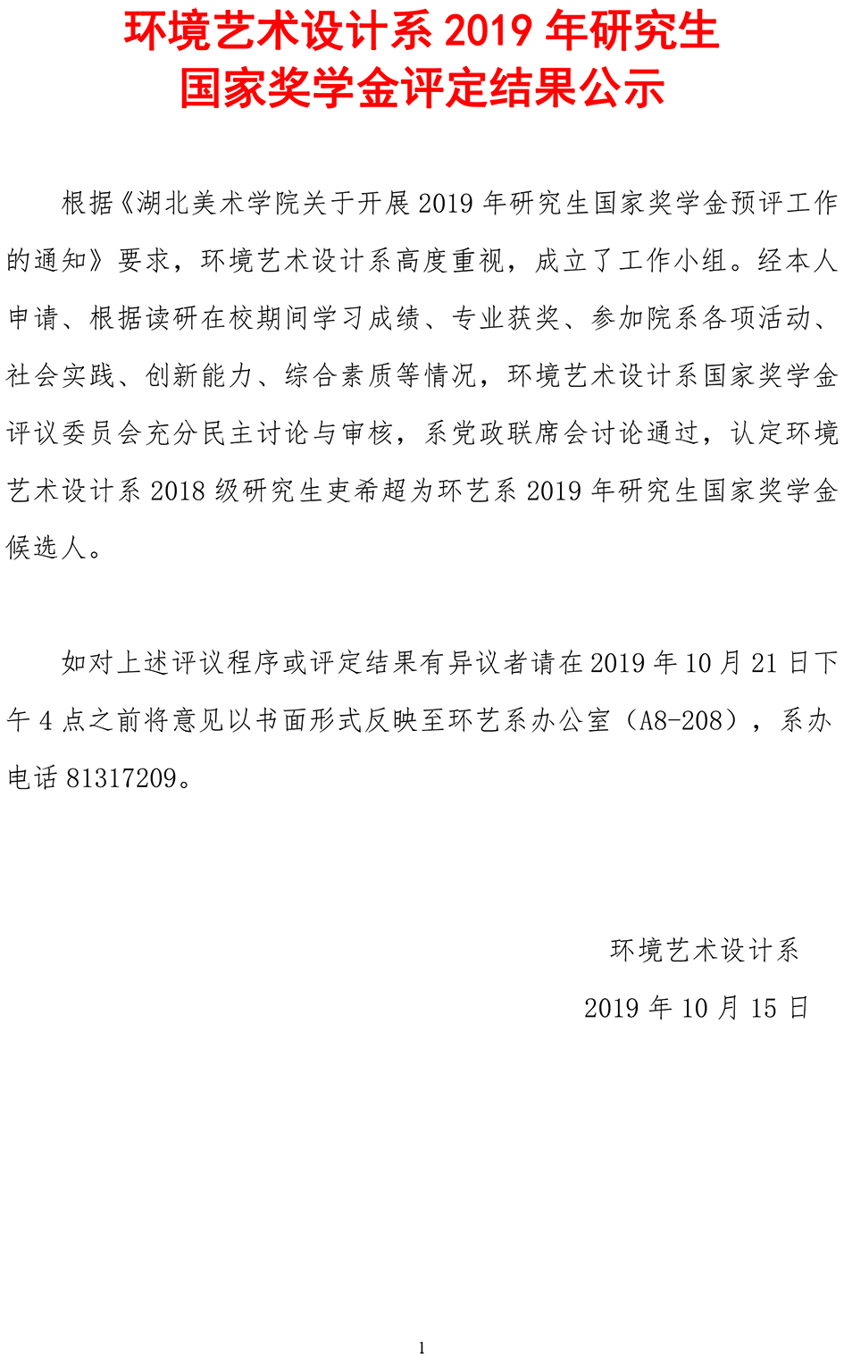 环境艺术设计系2019年研究生国家奖学金评定结果公示