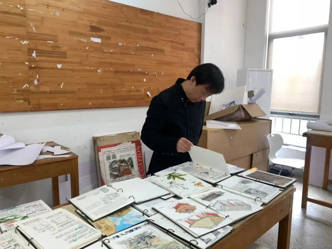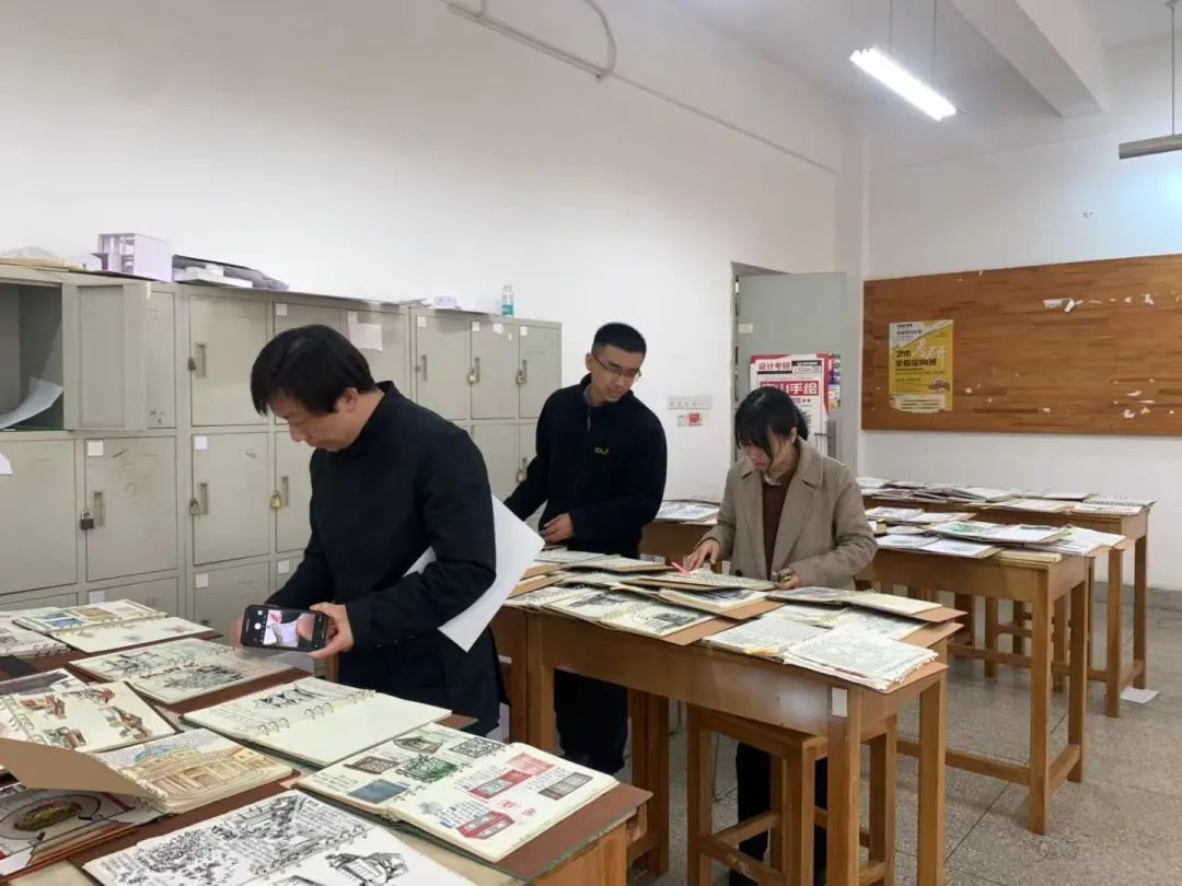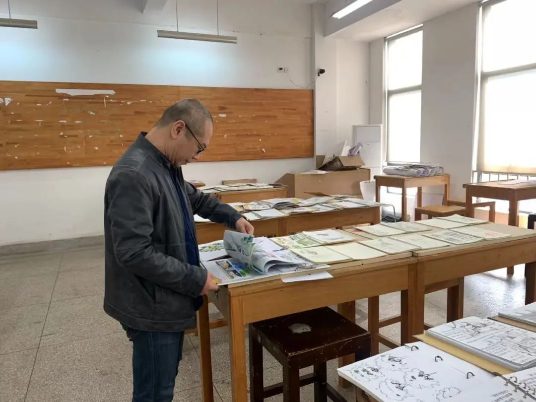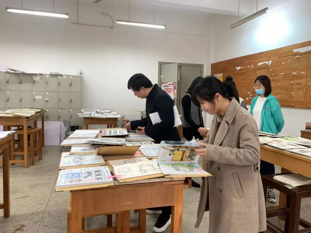 在评选手札的过程中,老师们都在认真的欣赏。