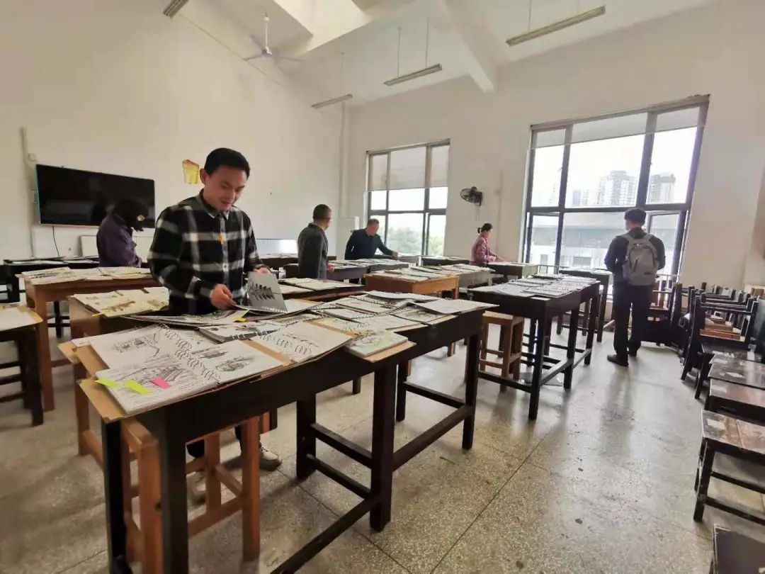 老师们仔细翻阅的过程