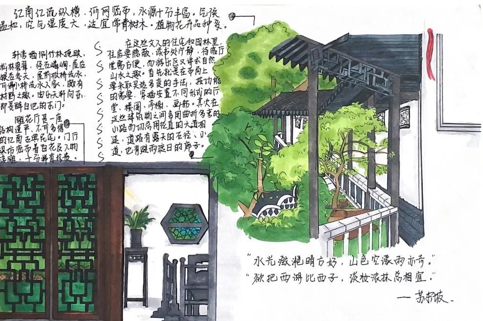 1.首先,就是手札的内容很重要,画好手札并不是一味临摹书上的画或者是建筑,而是要理解我们为何要画手札,作为将来要学习环艺的学子来说,手札其实是在给我们之后的学习内容打基础。比如,我们可以从一个大的方面入手,如果你对风景园林很感兴趣,你的手札可以着重园林方面去专研,或者你对古建筑感兴趣,那么你就可以着重专研我们古建筑的构建,这将对我们大二的设计课程起到了辅助的作用,所以画好手札的第一步应该想想我们手札专研的方向。
