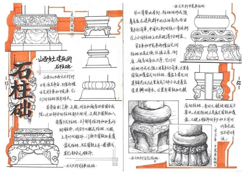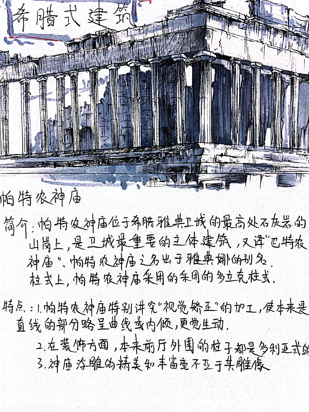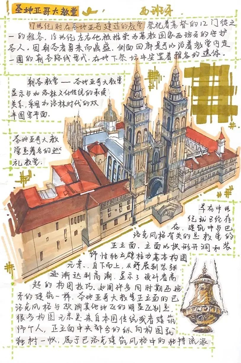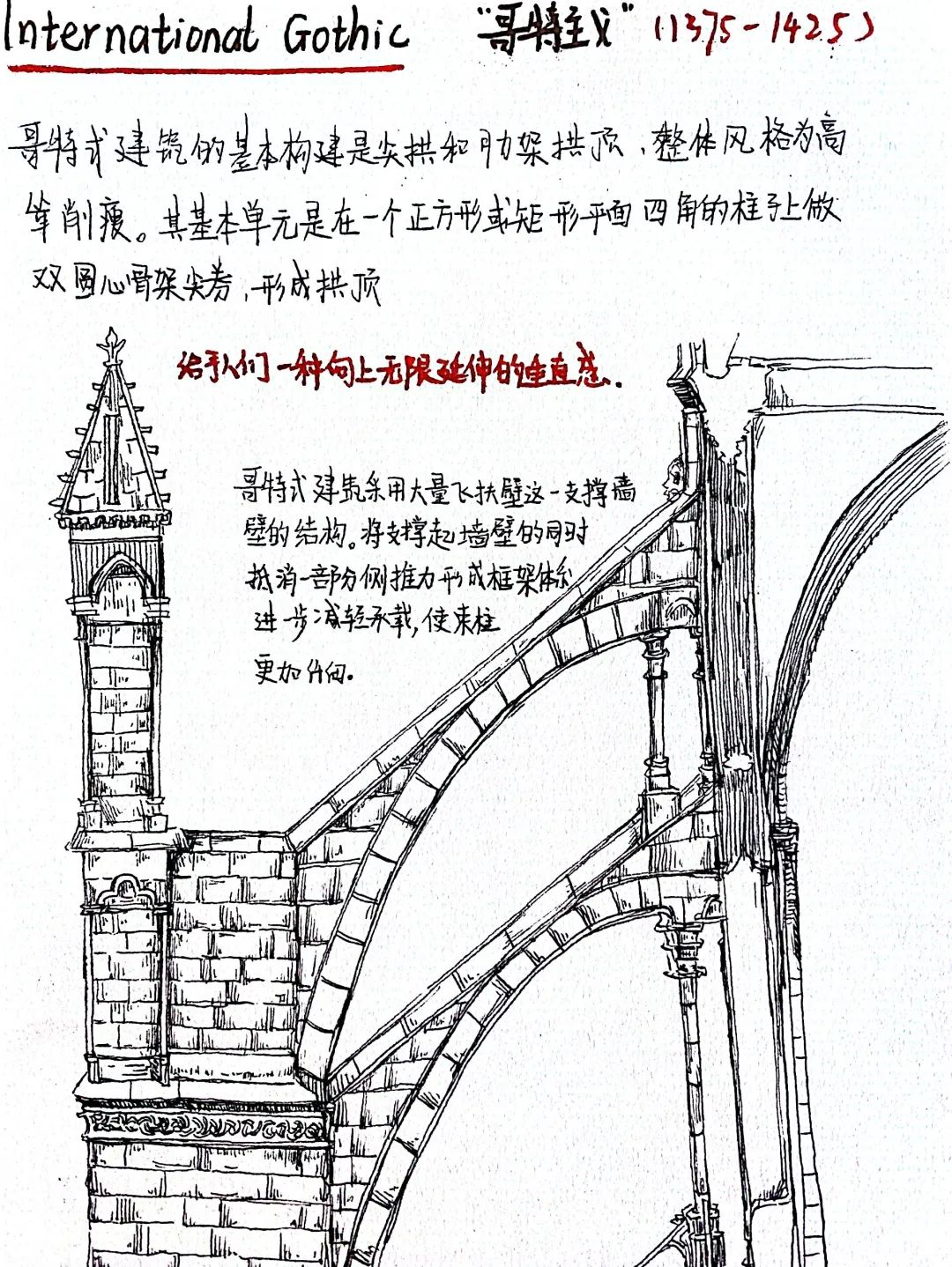 其次,我们可以着手去调查或翻阅一些建筑书籍、资料等。了解建筑内在结构及其搭建,并且可以画下来并在旁边标记好,这样我们在画好手札的同时也可以掌握一些建造基本知识点,这要比只临摹建筑要更实用。