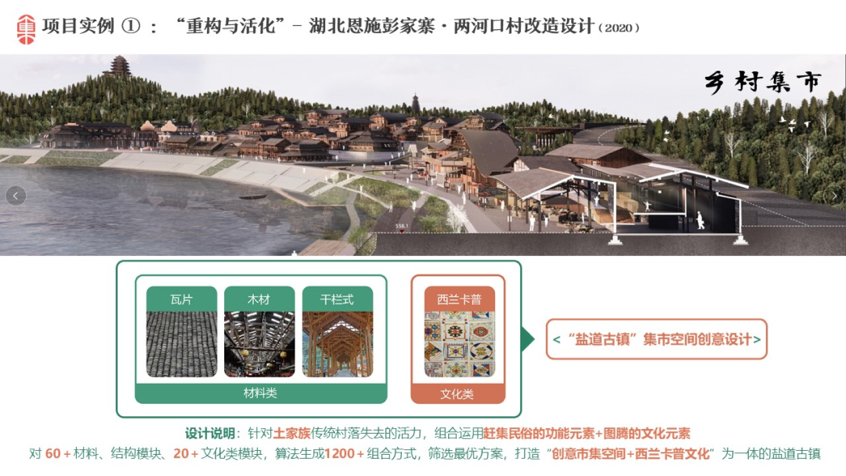 项目以“文化为主导,艺术为视角,建立新时代乡村文旅融合模式营造计划”。提出“五四一”创新设计服务,国内首创乡村设计数字化模块库,形成具有可复制性的模块组合运用,并基于艺术化解构与重组,形成模块化+个性化的技术创新和模式创新,突破单一个性化、定制化设计造成的高成本、低效益的技术壁垒。