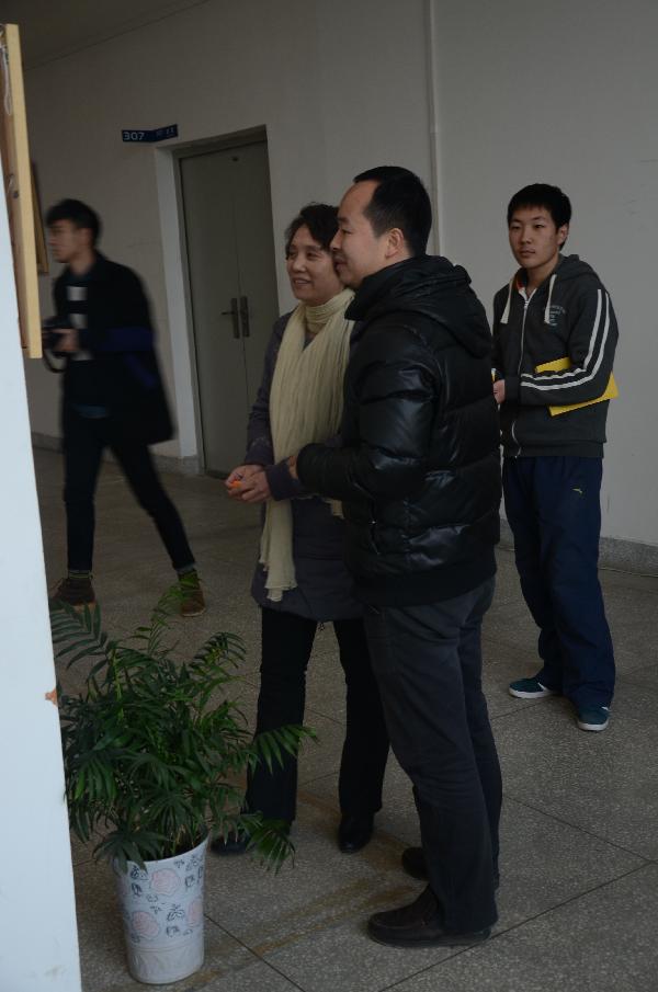 展厅内各式各样的创新作品——银杏树叶粘贴而成的画作、五谷杂粮组成的作品等等,都吸引了很多同学驻足观看,热烈探讨。在参观过程中,师生们一起对每幅作品就形式和内涵两个层面进行评审,对优秀作品进行了投票评选。环艺系党总支书记贾向红、辅导员王源新一同向前来观展的老师介绍此次展出的优秀作品。最后,由环艺体系员工会的工作人员统计作品票数后,产生获奖作品。