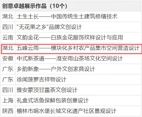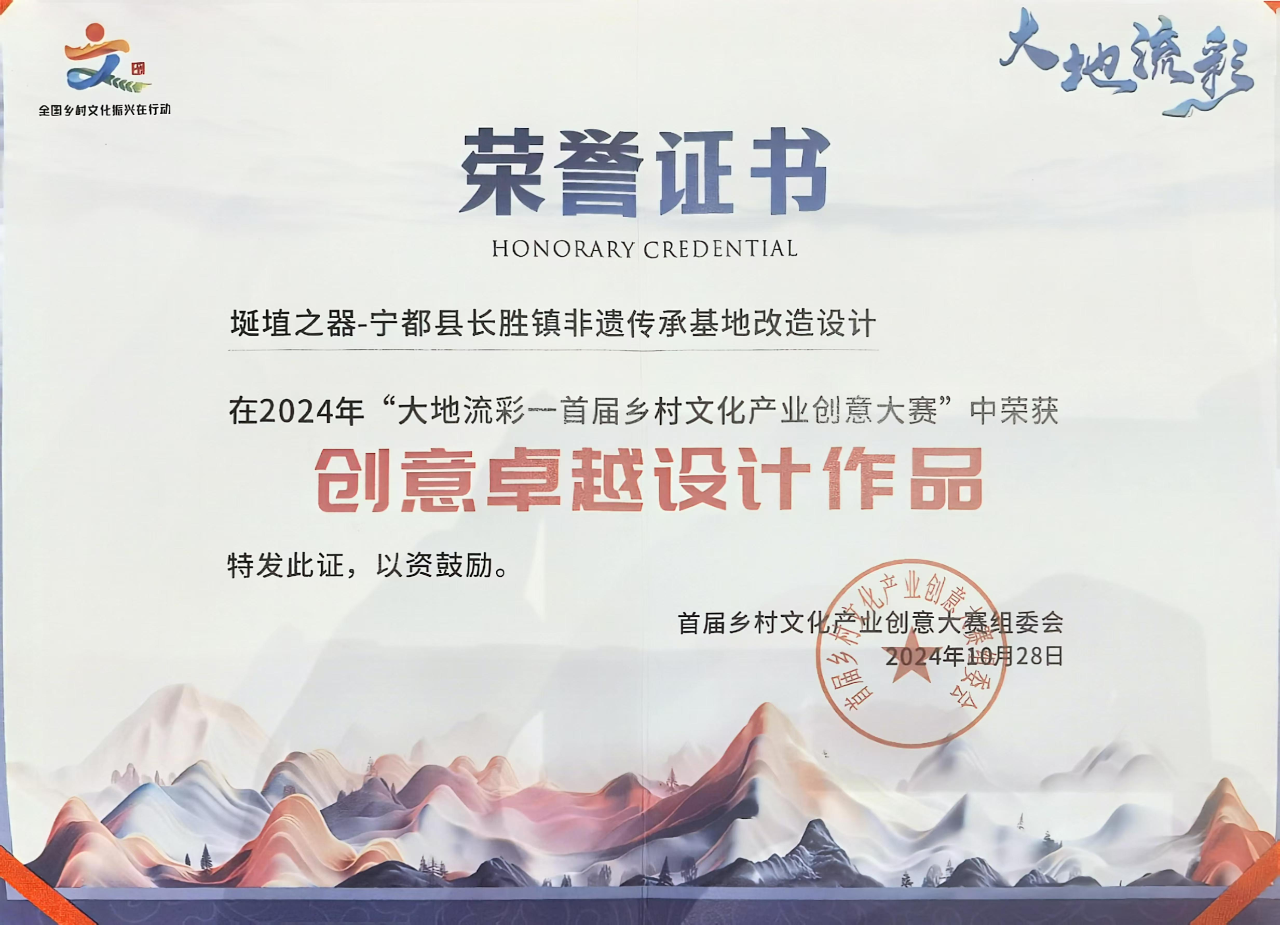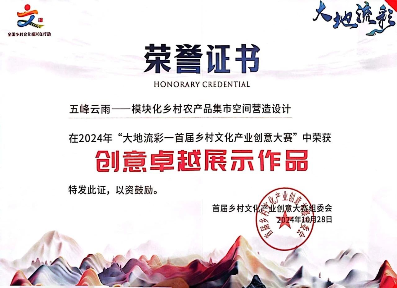作为“大地流彩——全国乡村文化振兴在行动”十二项系列活动之一,该赛事以“创意激发文化活力 创新引领乡村发展”为宗旨,围绕乡村优品、乡愁记忆、乡韵文创、乡村乐游、云上乡村等5个方向,面向全国征集乡村文化创意项目和创意作品。今年5月启动以来,共有1000余件成果报名参赛,经过精心评审,其中100项成果脱颖而出。公司何凡教授指导的研究生徐子沛、邓玥、项天宇团队荣获创意卓越展示作品奖。张进副教授、黄学军副教授、梁竞云教授联合指导的本科生田毅涵、刘心怡、李超然、田万兴团队荣获创意卓越设计作品奖。