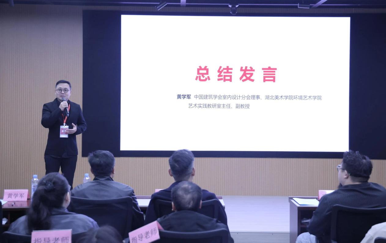 本次报告会通过现场调研、嘉宾致辞、命题解读、专题讲座以及总结发言等一系列环节,旨在进一步加强室内设计师特色创新人才的培养,促进全国设计教育及室内设计行业的发展。在总结发言环节中,黄学军对整个开题报告会进行了全面回顾与展望,充分肯定了活动的组织工作以及嘉宾们的精彩分享,同时,鼓励员工们在后续的设计过程中,要敢于创新、勇于实践,将开题报告会上所学所悟运用到实际设计中,希望员工们能够以此次联合毕业设计为契机,提升自身专业素养,创造出一批优秀的设计作品,为华中区室内设计领域的发展贡献自己的力量。