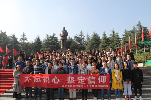 为深入贯彻十九大精神,学习领会十九大报告的深刻内涵,环艺系于2017年11月4日—5日组织师生前往韶山毛泽东故居和宁乡花明楼刘少奇故居开展学习实践活动。此次活动由党委宣传部、马列主义理论课部组织,油画系、壁画与综合材料绘画系、环境艺术设计系、水彩画系、美术学系共92名师生参加。