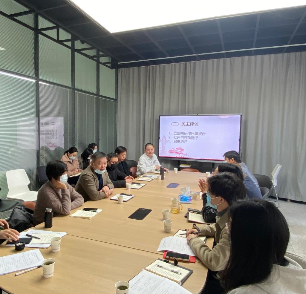 首先,丁凯书记向校领导及参会的党员老师汇报了前期组织学习情况、查摆问题情况,随后代表教工支部作了2021年度教工党支部工作总结,其中包括党支部基本情况,支部年度活动开展情况以及党支部委员会查摆问题中发现2021年度存在的问题及努力方向。在听取完汇报后,党支部党员采取个人自评、党员互评的方式,开展批评和自我批评。在党员批评与自我批评结束后,会上向各位党员发放了党员民主测评表,对党员进行无记名投票测评。