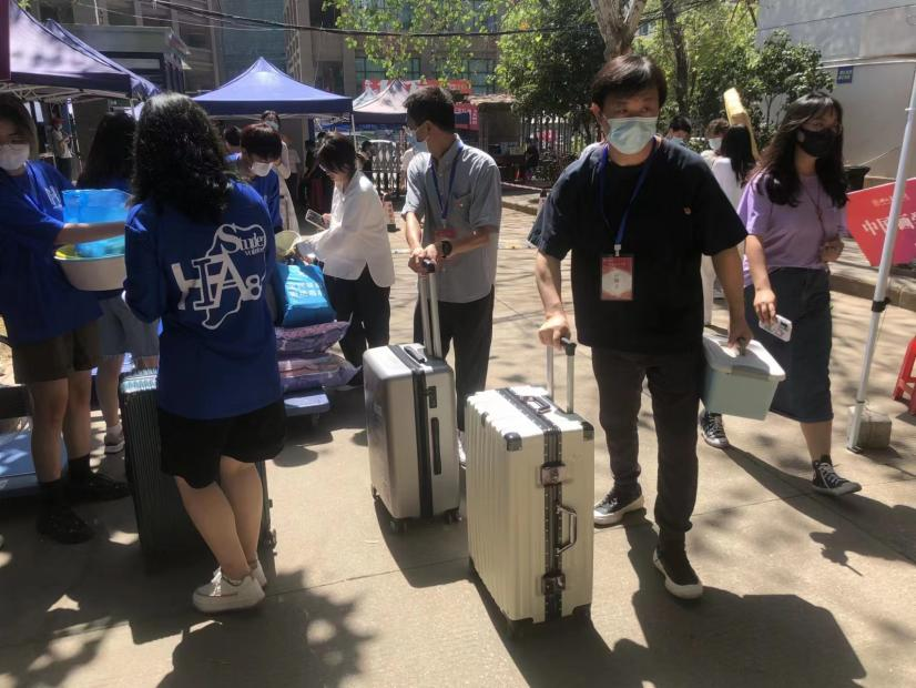 在迎新过程中,党员教师和员工志愿者并肩作战,帮助新生搬运行李、注册报到、了解公司校史校情、熟悉公司环境,给刚入湖美校园的新生带来温馨感和归属感。