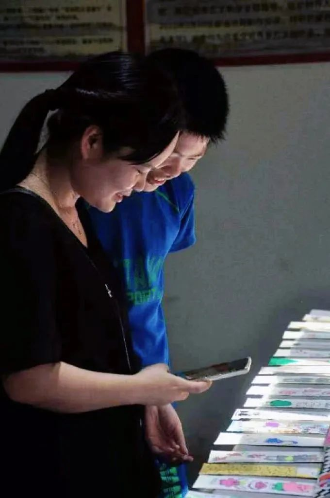 孩子们向家长分享自己的画画成果,家长们欣慰地认真倾听。