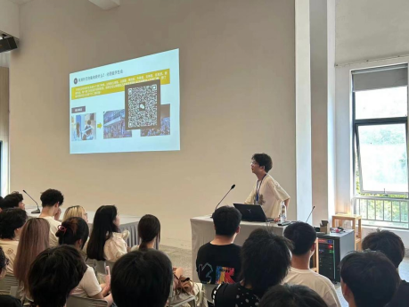 员工第一党支部书记蔡天昊围绕“认知大学”“新生过渡”“习惯养成”“防诈宣传”等主题,分享了本科期间的学习经验,并向新生介绍了院员工会、“沐艺”志愿者分队和沐艺园等员工组织。