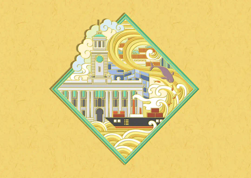 《历久弥新》选取并融合了江汉关、龙王庙等传统地标元素,充分体现了江汉城区文化特色。