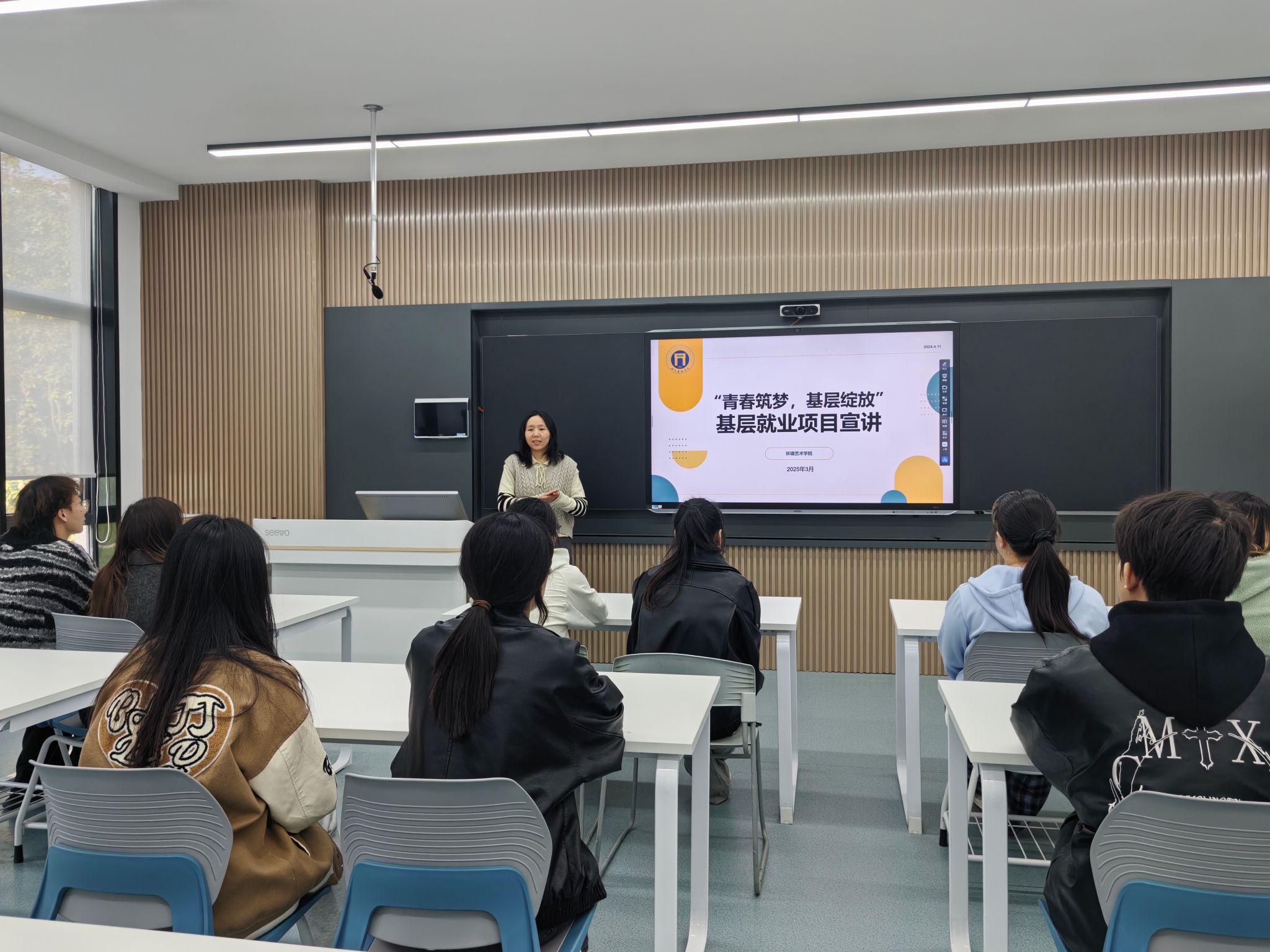3月20日下午,公司举办“青春筑梦,基层绽放”基层就业项目宣讲会。会上,毕业年级辅导员何莉详细介绍了“西部计划”“三支一扶”“特岗教师”等基层项目的政策内容、报考条件、服务期限及发展前景等内容。宣讲会帮助毕业生系统了解基层就业渠道,鼓励学子将个人理想融入国家发展需求。
