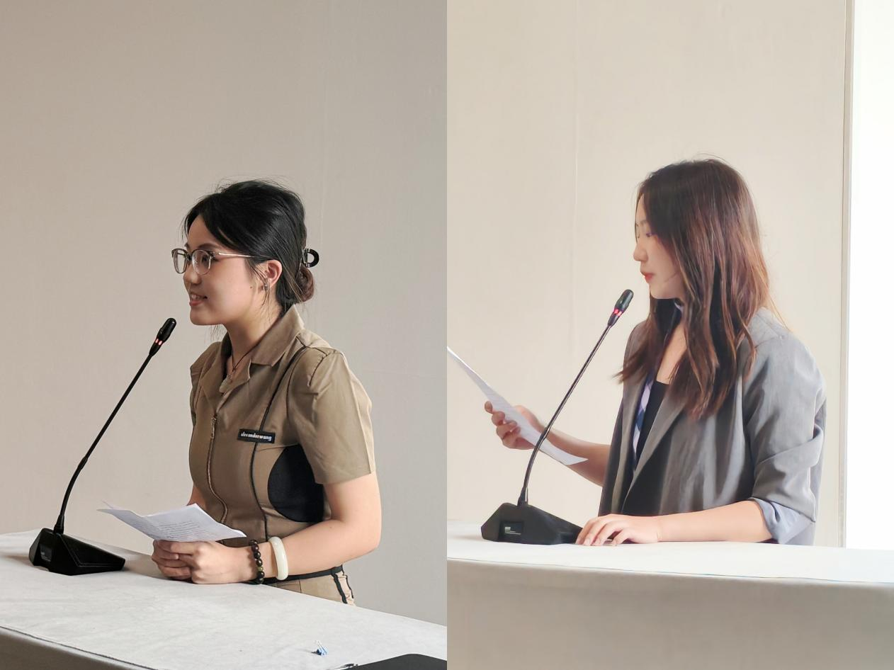 本科生梁梦洁、研究生李妮懋作为员工代表发言。她们深情回顾了在校求学的难忘岁月,体悟学术生涯中的蜕变与成长,以“流水不争先,争的是滔滔不绝”与全体毕业生共勉,祝愿同窗前程似锦、恩师桃李满园、母校再创辉煌。