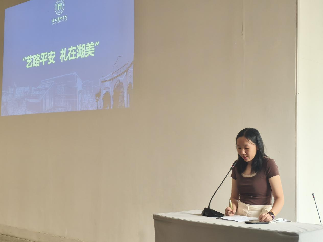 辅导员何莉以“艺路平安,礼在湖美”为题开展文明离校教育,叮嘱员工强化安全意识,确保平安离校;爱护公共设施,践行文明离校;常怀感恩之心,一同和谐离校。
