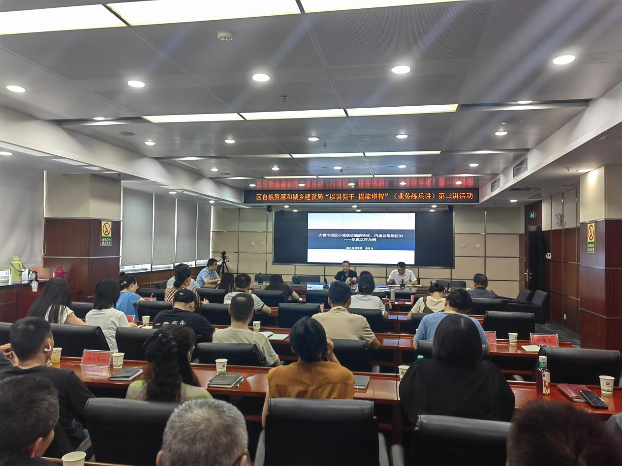 为深化校地合作,提升公司教师发挥专业能力服务地方发展实效,7月11日下午,武汉市江夏区自然资源和城乡建设局举办“以讲促干,提能增智”(业务练兵讲)第二讲专题讲座,公司正在江夏区自然资源和城乡建设局挂职的教师庞克龙受邀担任主讲人。讲座由区局四级调研员肖文主持,规划编制科、规划管理科全体工作人员,以及局机关其他科室和局属单位代表参加了交流。