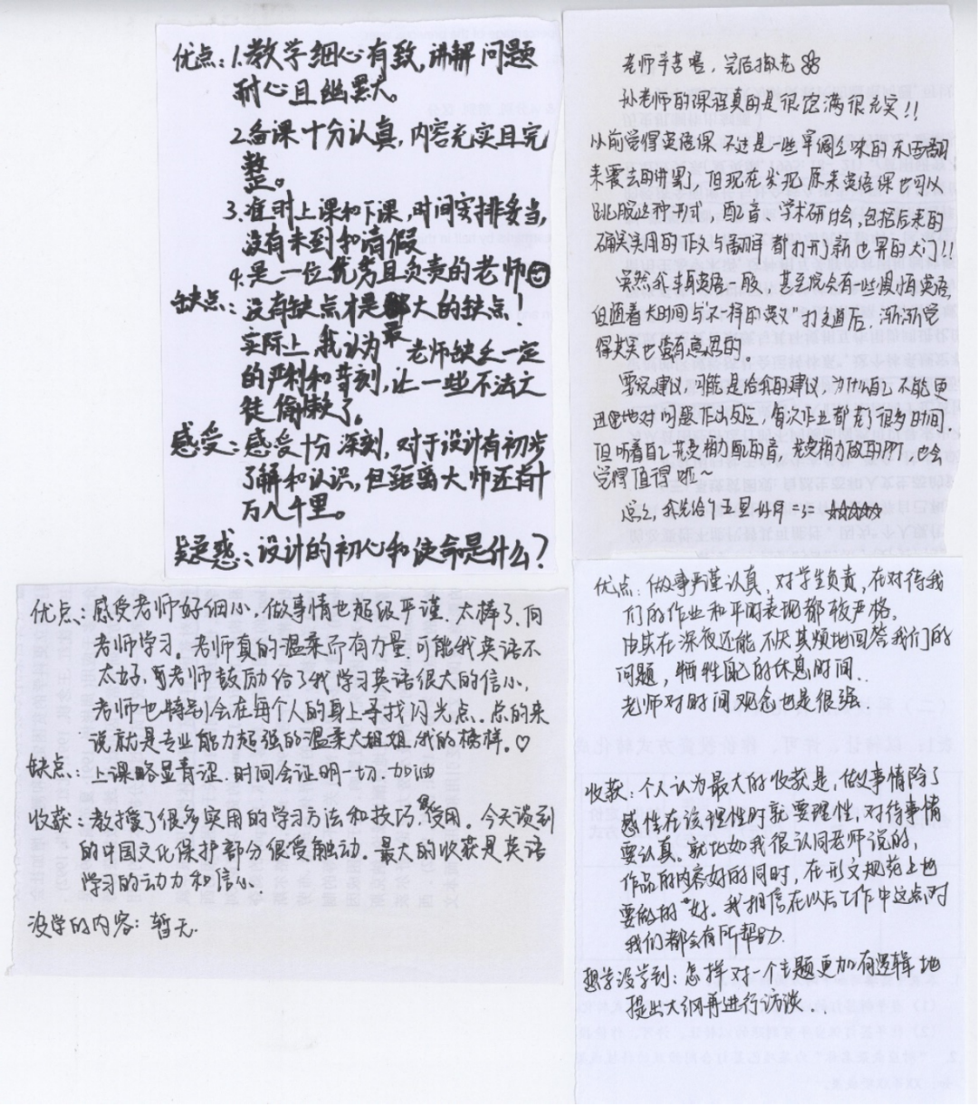 刚担任新生班主任时,孙歆韵自己也是刚到美院任教的新老师。因此,在短时间内熟悉校史校情及环境设计专业的教学体系,以便给予员工必要的引导和帮助,成为了她的首要任务。为此,一方面,她珍惜公司提供的新进教师培训机会,从宏观上进一步明确自己应该培养什么人、怎样培养人、为谁培养人这三个根本问题;从中观上深入了解湖美的办学历史和规章制度,深化认同;从微观上整合零碎的教学经验,用先进的教育理论完善自己的教学方法。另一方面,她积极参与公司“十四五”人才培养方案的修订工作、课程大纲的编写工作,以及本科教学评估材料的整理工作等,从中尝试理解BETWAY必威的教学架构逻辑和人才培养目标。并在每一次结课时,主动请员工在纸上匿名评价她的教学优缺点,以及在课程中的最大收获和未解疑惑。