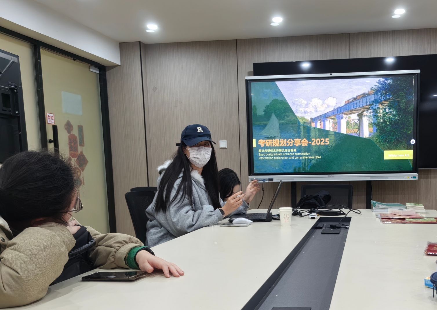 随后,2025级研一学姐陈至彤从考研常识入手,结合自身备考经验,详细解读了环境设计及相关专业的招生特色、复试偏好及历年录取情况,提供了不同阶段的复习重点、不同科目的学习策略和经验分享,为同学们提供了贴合院校实际的择校参考与复习思路。